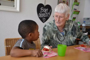 Istituita nel 2002, questa iniziativa offre alle persone anziane a reddito modesto, residenti a Saint-Imier o nei comuni limitrofi, la possibilità di consumare pasti a prezzi contenuti presso al ristorante de La Roseraie. Per i residenti della casa per anziani, il progetto offre occasioni di contatti quotidiani con i propri concittadini. Per le persone che vivono all’esterno della struttura, invece, costituisce un’opportunità di socializzazione, contribuendo a rompere l’isolamento sociale e a combattere la solitudine.